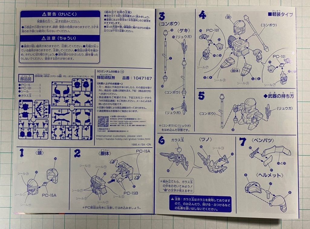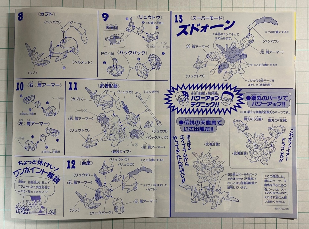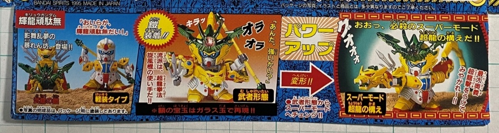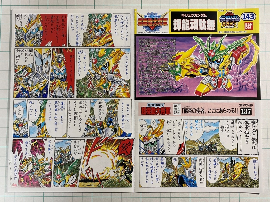 今回はSDガンダムBB戦士 No.143「輝龍頑駄無」を制作していきます。1995年発売、新SD戦国伝・超機動大将軍編の第3弾キットです。まずは素組みからスタートしました。