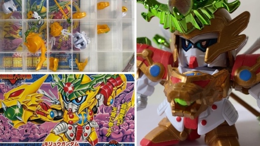 1995年発売のSDガンダムBB戦士「輝龍頑駄無」を、素組みから筆塗り塗装まで徹底レビュー。ファレホとシタデルを使った制作工程や、軽装形態・武者形態・超龍の構えまで詳しく紹介します。