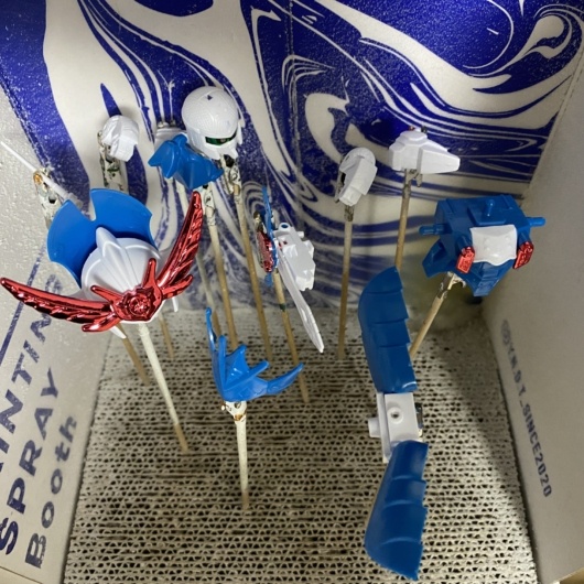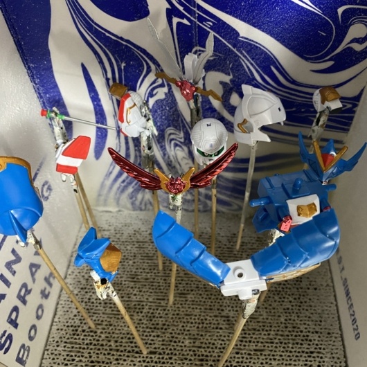 完成後は軽装形態、武者形態、マッハウィングフォームの三形態を一通り確認し、いったん分解して塗装準備へ進みました。