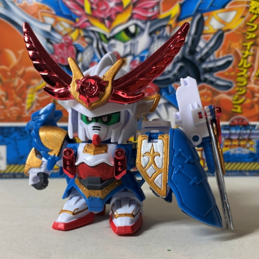 武者鷲主は闘覇五人衆の一人で、デザインベースはガンダムローズ。異国から来たナイト風の武者という設定で、優雅でクールなキャラクターです。三形態に変化する聖剣「ウィングキャリバー」や、必殺技「ファイナルスラッシュ」など設定面も非常に魅力的です。
