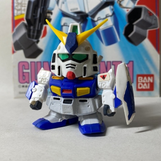 今回は、SDガンダムBB戦士シリーズより、No.37 ガンダムNT-1を水性アクリル塗料でリペイントしました。1989年発売のキットで、標準形態からチョバムアーマー装着形態まで再現可能な人気アイテムです。