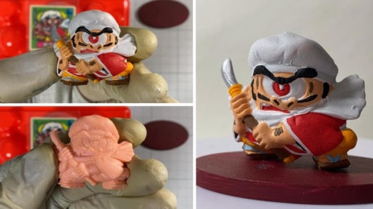 1988年発売の当時物ビックリマン消しゴム「魔僧弁慶」を、水性アクリル塗料で筆塗りペイント。下処理から塗装工程、使用カラーまで詳しく記録します。