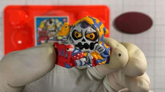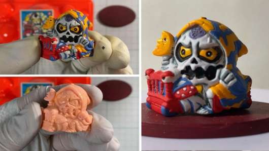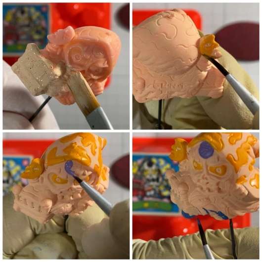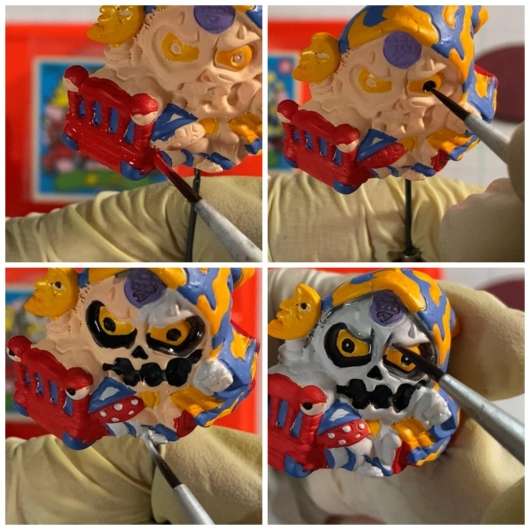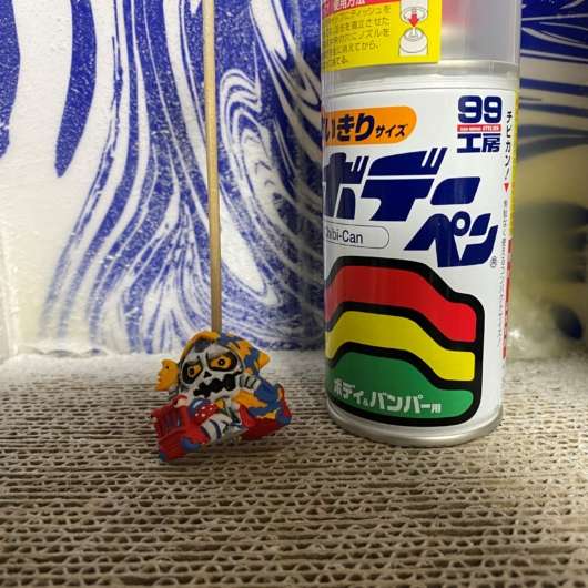 1988年当時物のビックリマン消しゴム「悪六(あくむ)」を、水性アクリル塗料で筆塗りリペイント。下処理から細かな色分け、仕上げまで詳しく解説します。