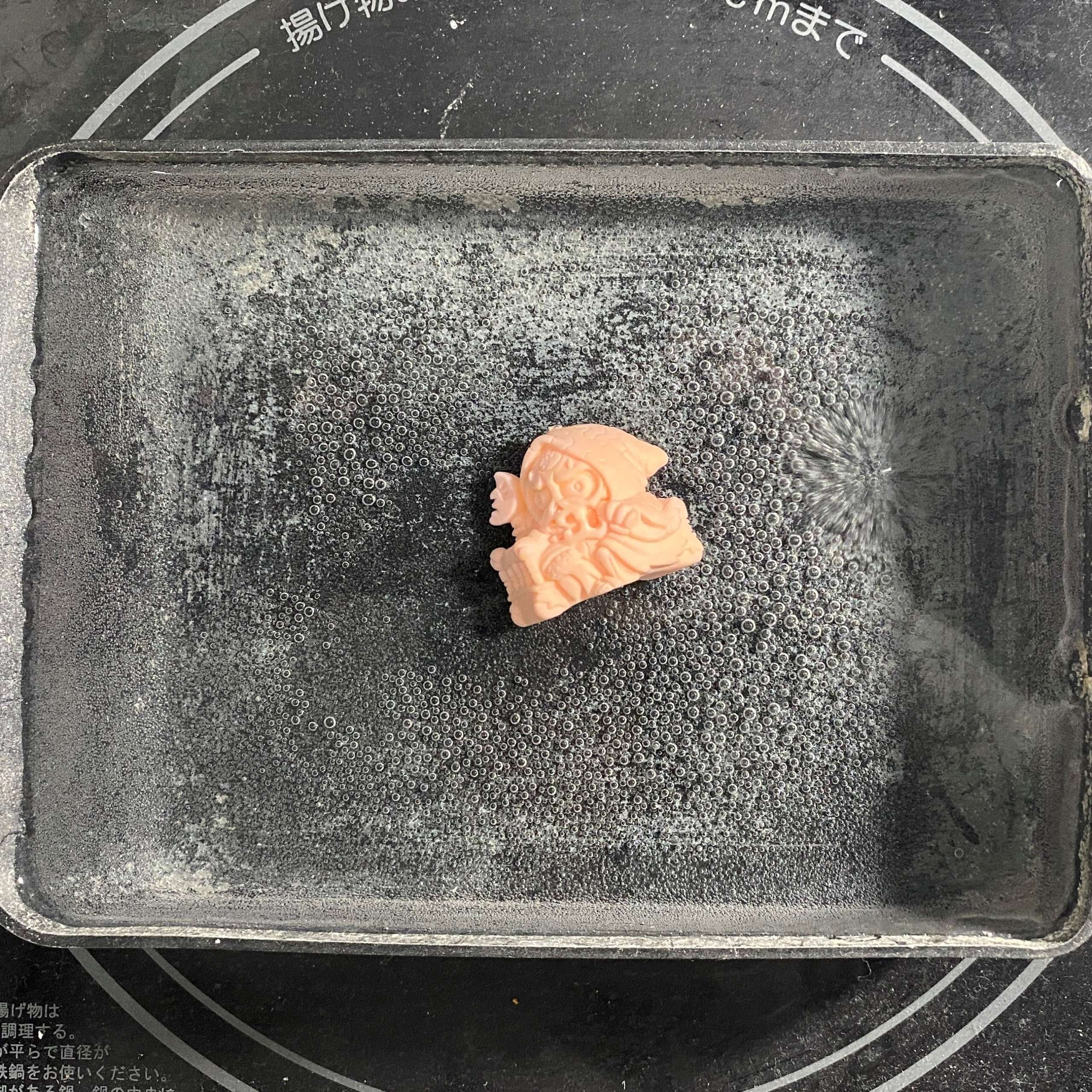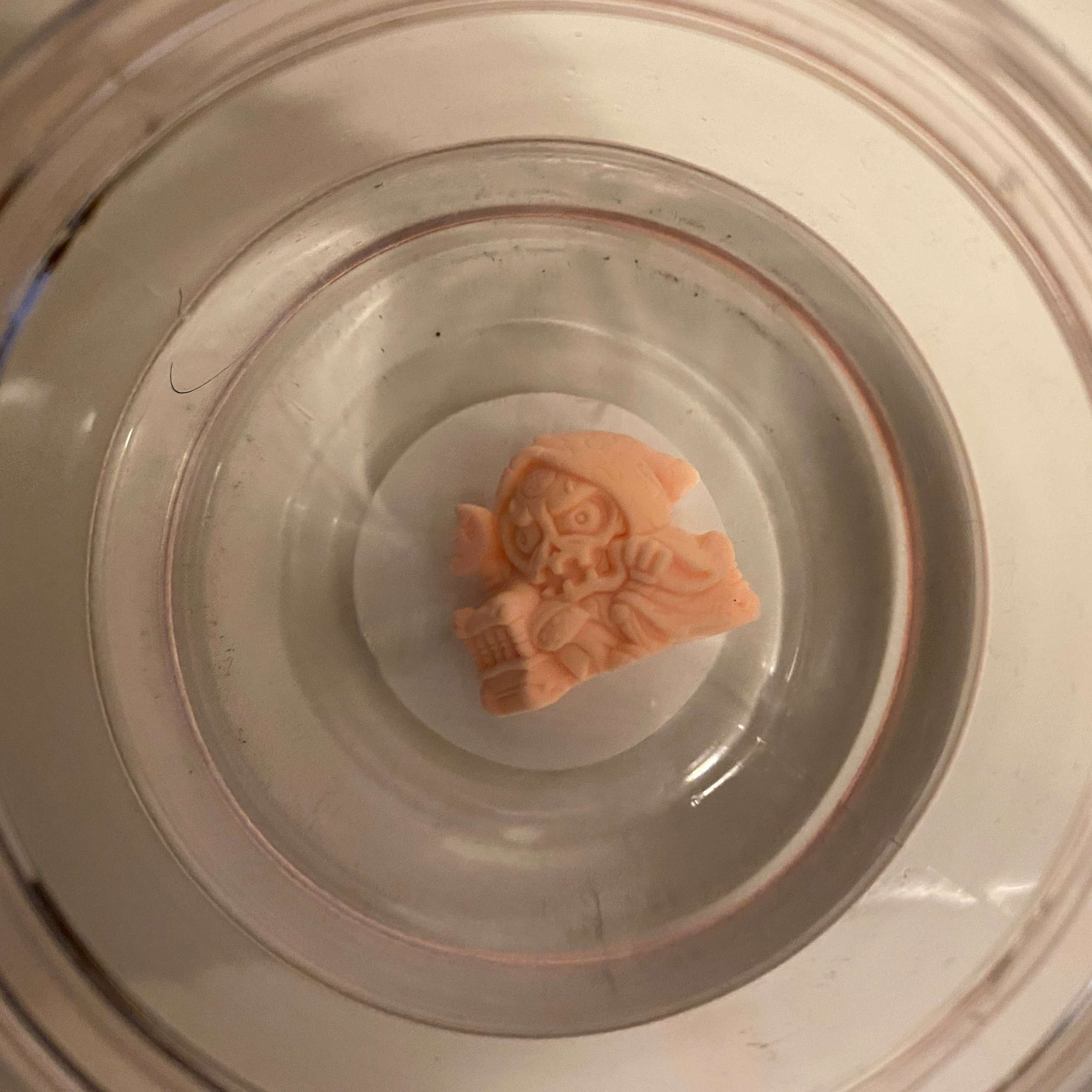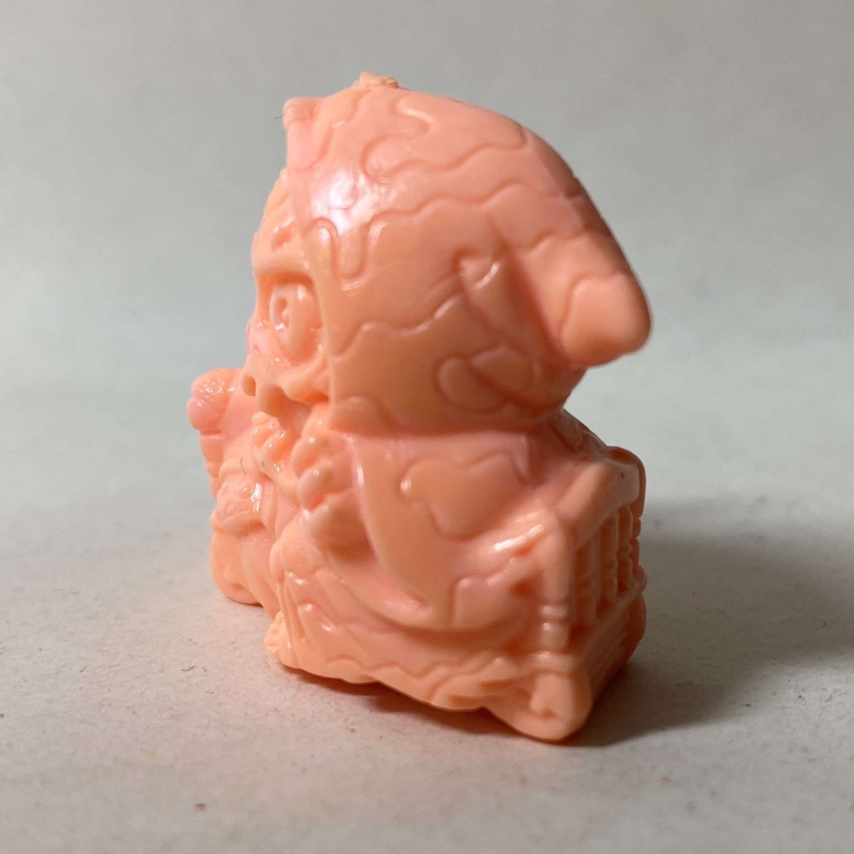 素体はペールオレンジ成形で、高さ約3cmほど。経年による汚れはあるものの、キズの少ない良好なコンディションでした。造形は非常に細かく、シールやパッケージだけでは判別しづらいディテールも多いのが特徴です。