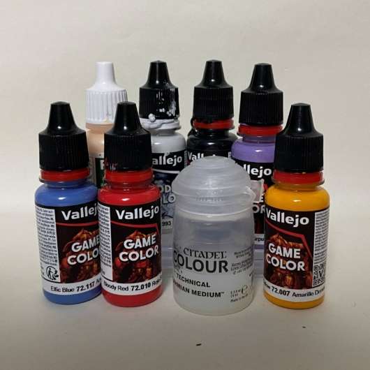 まずベースとして、ファレホの肌色ハイライトを薄く全体に塗布。白に近い下地を作ることで、その後の発色が格段に良くなります。