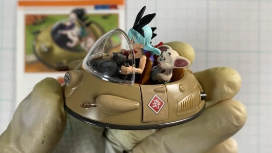 この機体は「牛魔王も愛用したオールドタイプの機銃付きエアカー」という設定で、独立した運転席にはブルマが搭乗します。後部は二人掛けシートとなっており、孫悟空とウーロンが乗り込む3人乗り仕様です。