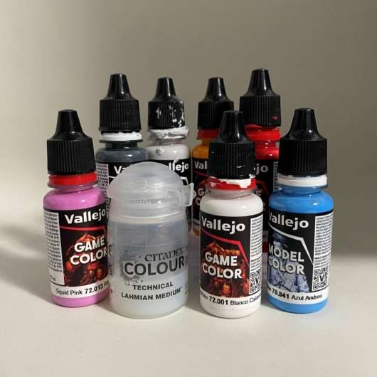 塗装はすべて筆塗りで行い、ファレホをメインにシタデルカラーを併用しました。工程は「下地→上塗り」の2段階です。
