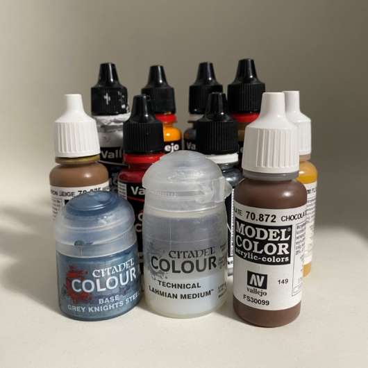 ベースにはファレホのミディアムフレッシュトーンを使用し、全体の発色を底上げ。その上からベージュブラウンを重ね、肌部分を自然に仕上げています。隠ぺい力の高い塗料を活かしつつ、ラーミアンメディウムで薄めながらムラを防ぎました。