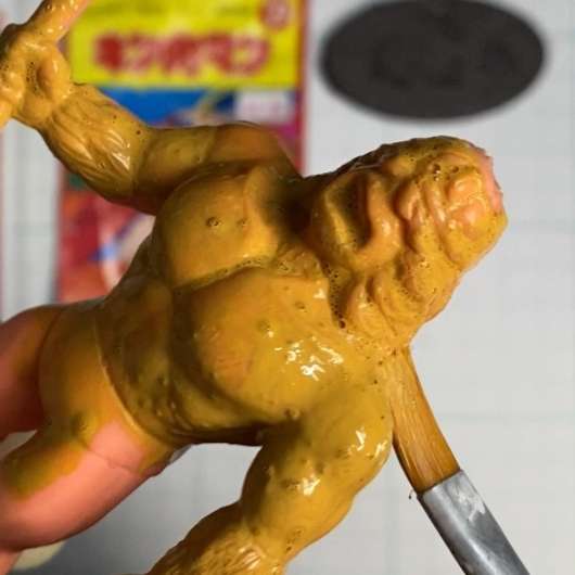 9cmサイズの丸越製デカ消し「ジェロニモ」を水性アクリルでリペイント。下処理から筆塗りのコツまで、初心者でも分かりやすく解説します。