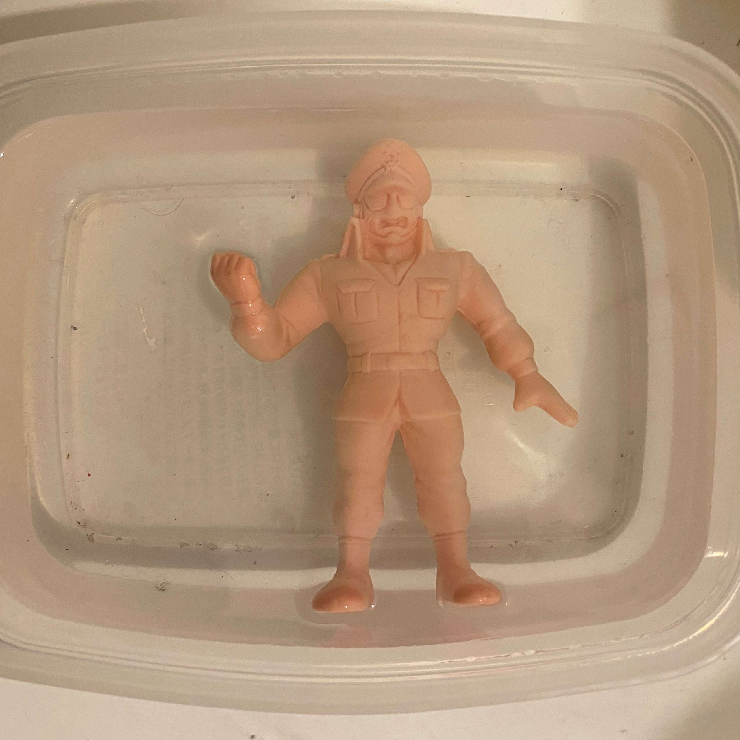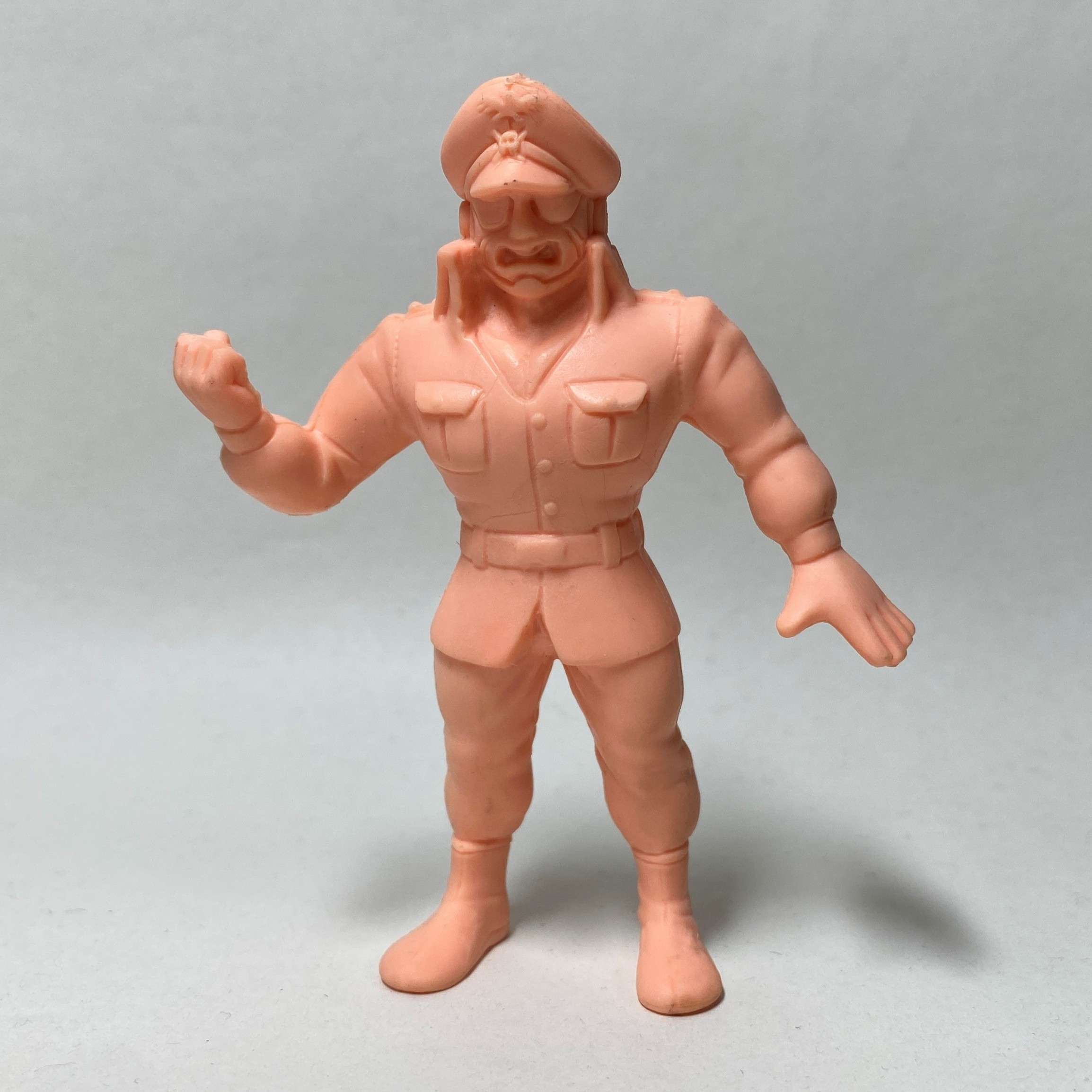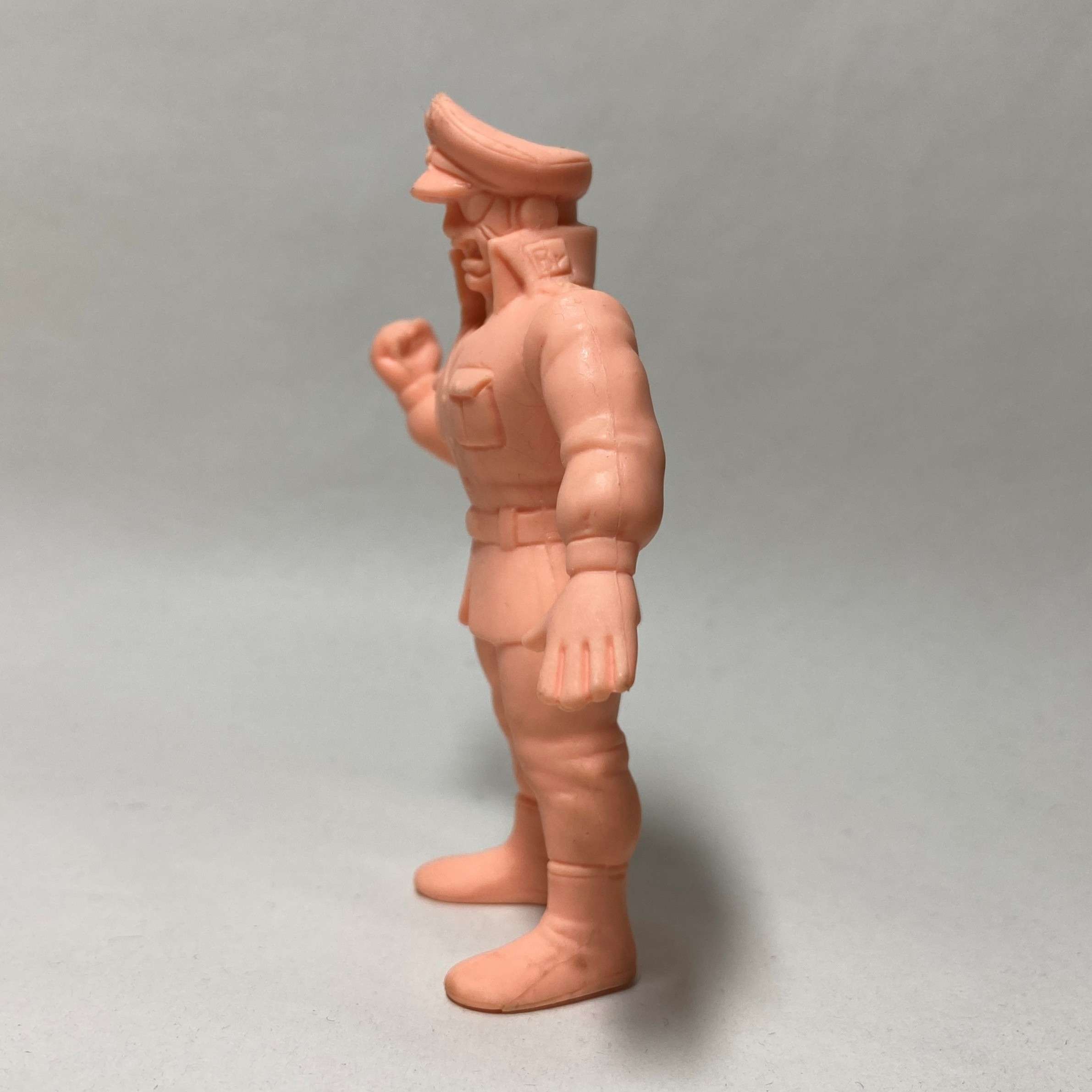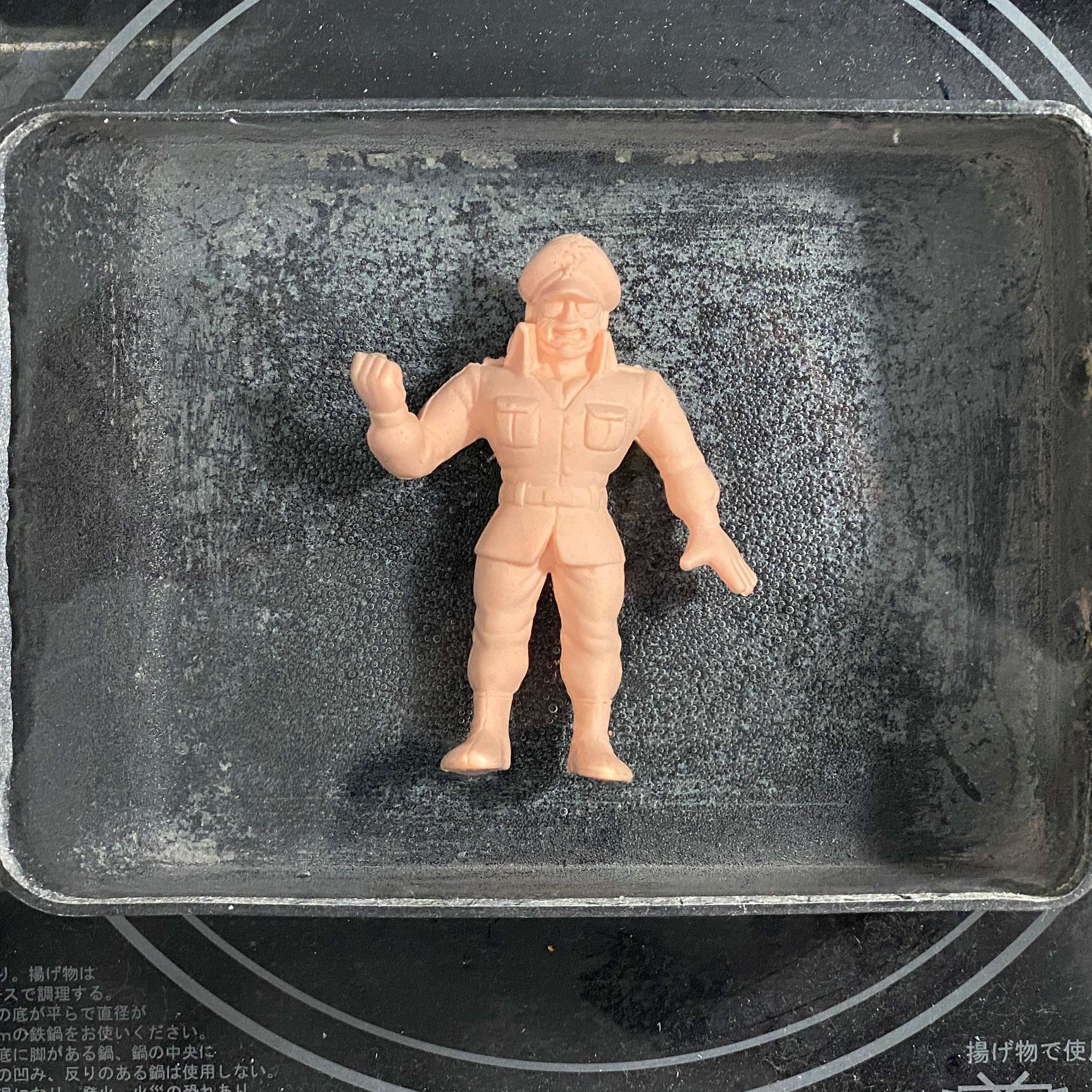 今回は9cmサイズの丸越製デカ消し第3弾C型より、ドイツ出身の正義超人・ブロッケンJr.をペイントしました。水性アクリル塗料を使用し、すべて筆塗りで仕上げています。当時のラインナップにはウォーズマンミスターカーメンなど人気キャラが揃っており、コレクション性の高い弾となっています。