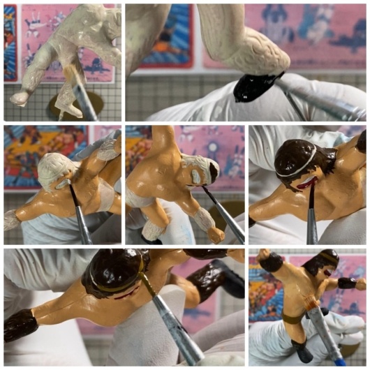 昭和に誕生したキン肉マン消しゴム「デカ消し・ファイティングポーズシリーズ」。今回はスカイマンとジェロニモのコブラツイストを原作カラーでリペイントしました。下処理から仕上げまでの筆塗り工程を詳しく紹介します。