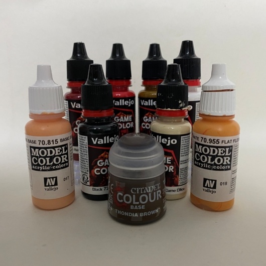 - ファレホカラー:世界的に評価の高いアクリルカラー。筆ムラが出にくく、広い範囲でも滑らかに塗装可能。