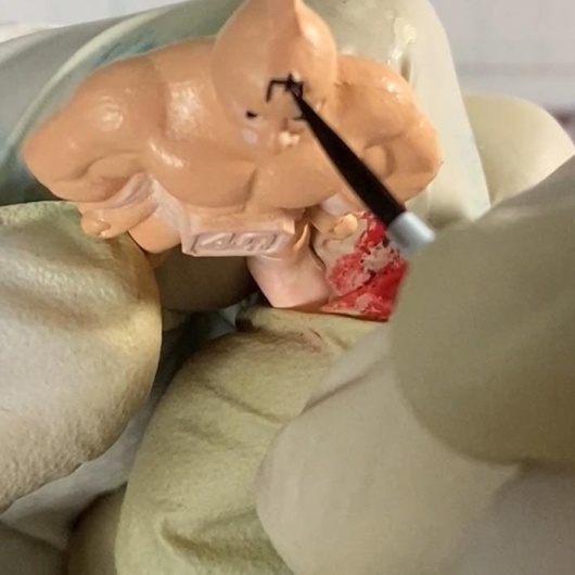 瞳・額の肉マーク・ベルトなどに使用。極細筆で細やかに入れています。