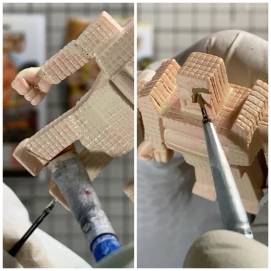 原作カラーを参考に、砂質の特殊効果も追加。水性アクリル塗料を使い、全て筆塗りで仕上げています。