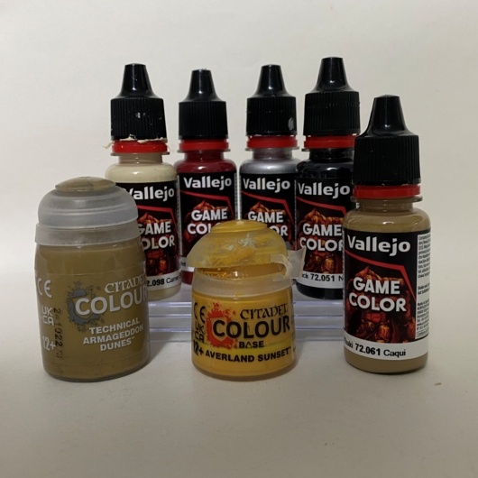 カーキの上から、シタデルカラーのテクニカル塗料「アルマゲドンデューン」を使用。