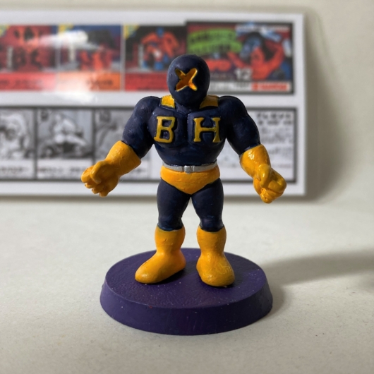 塗装後は、超人図鑑に掲載されているカラーリングをイメージして仕上げました。濃い青と黄色の相性が良く、全体として鮮やかでまとまりのあるカラーリングになりました。