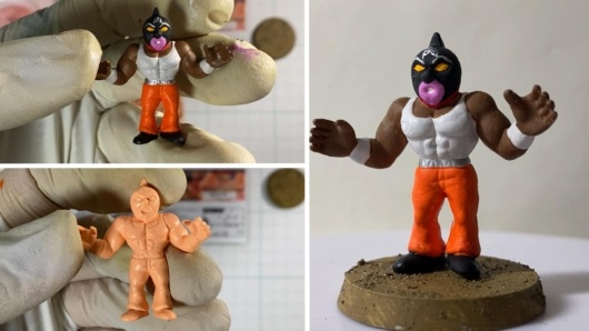 2008年発売のキンケシ復刻版「夢の超人タッグ編」より、キン肉マングレートを水性アクリル塗料で筆塗りペイント。初代TVアニメ初期カラーを参考に、下処理から仕上げまでの工程を詳しく記録しました。