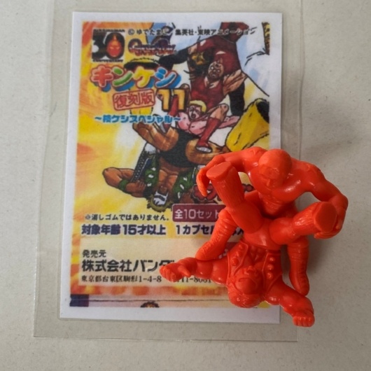 今回塗装するのは、2009年発売の「キンケシ復刻版」第11弾・技ケシスペシャルに収録されたマッスルドッキングその1です。当時のカプセルに同梱されていたブックレットも健在で、クロスボンバーや阿修羅バスターなど、新規造形の魅力的な技ケシがラインナップされていました。