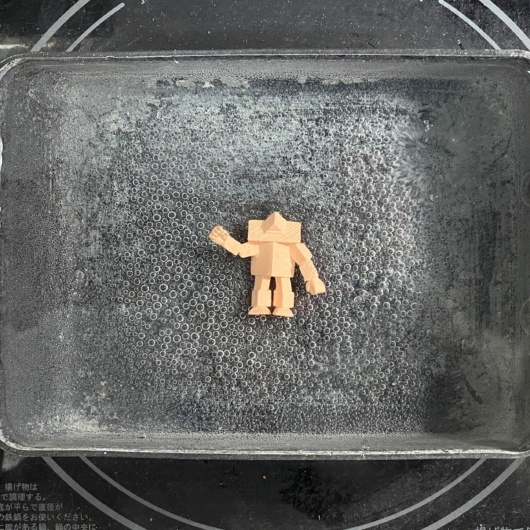 1)煮沸して形を整え、油分・埃を除去