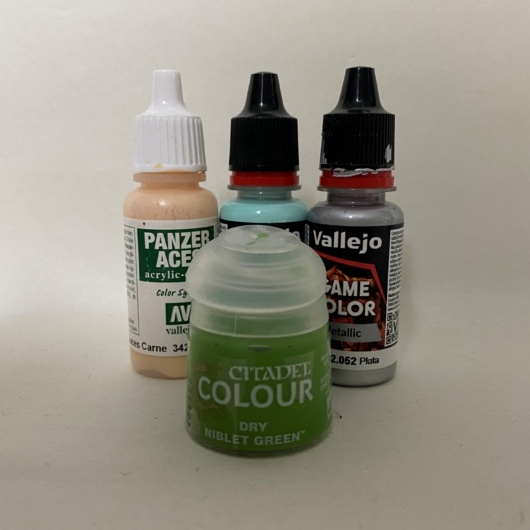 今回のポイントは シタデルカラーのドライ「ニブレットグリーン」 を使ったドライブラシです。