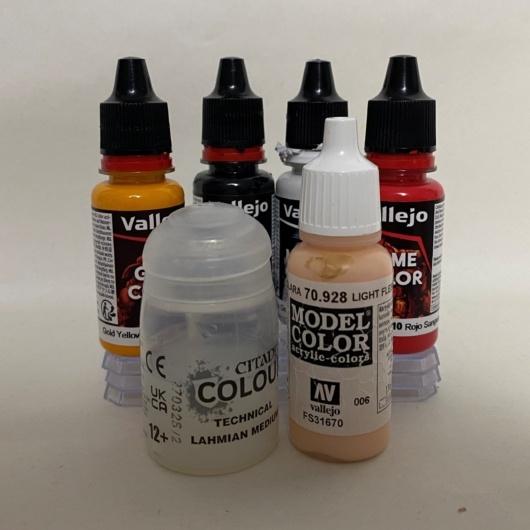 塗料は水性アクリルのファレホを中心に、要所でシタデルカラーを使用。面相筆と平筆を使い分け、効率よく塗装しました。