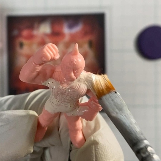 今回は1990年代に放映された「キン肉マン キン肉星王位争奪編」のカラーリングをモチーフに彩色しました。鮮やかな配色は小サイズのキンケシでも存在感抜群です。