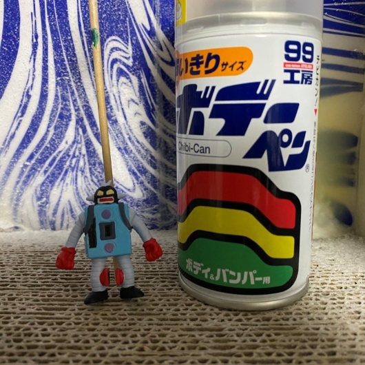 塗装後はソフト99のボデーペン・クリアでトップコート。乾燥後、台座にセットして完成です。