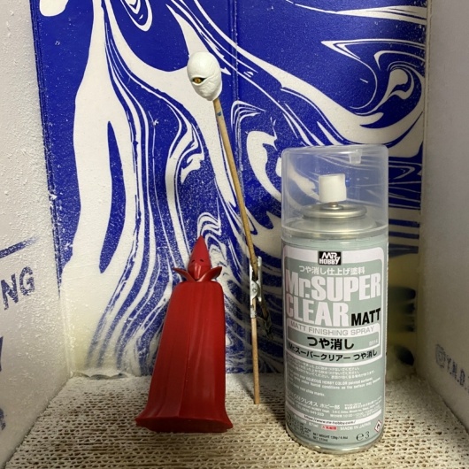 塗装に入る前に、Mr.スーパークリア つや消しを全体に吹き付けて下地を作成。