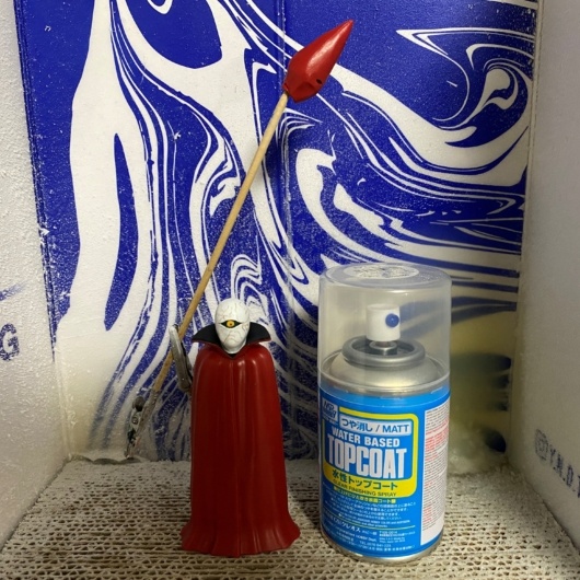 最後に水性トップコート(つや消し)を吹き付けて乾燥させ、完成です。