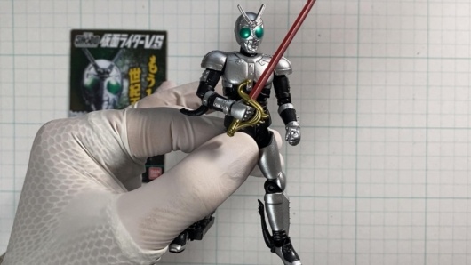 シャドームーンも右手にサタンサーベルを握らせるポージングを目指して組み立て。頭部のジョイントは硬めなので注意が必要です。