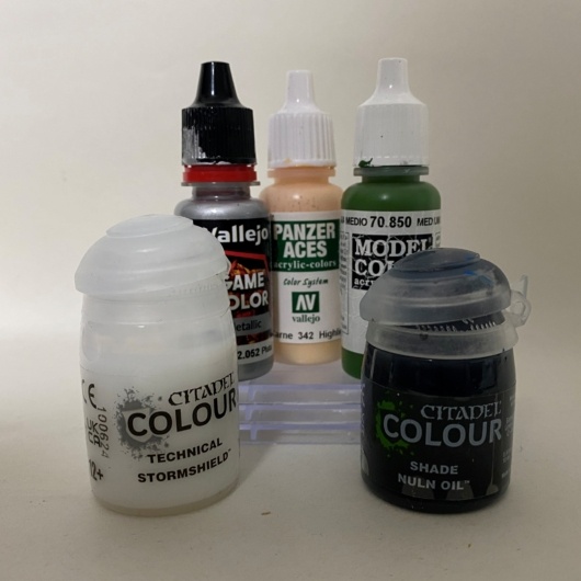 使用塗料は水性アクリル「シタデルカラー」と「ファレホ」です。
