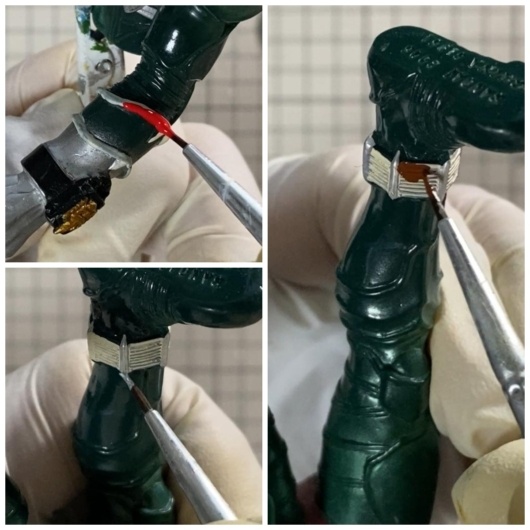 - 緑:シタデル「キャリバングリーン」 → 剥げた緑部に補色
