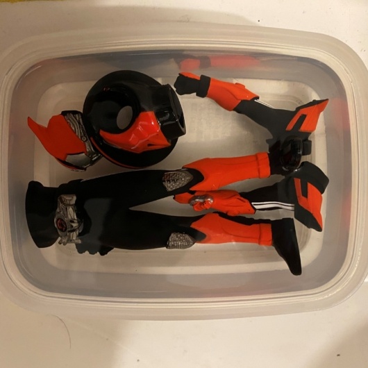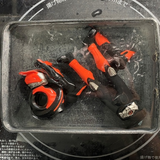 ソフビをお湯で煮沸して柔らかくし、変形を戻しやすくします。