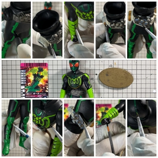 今回はその中から、平成ライダーシリーズの一人「仮面ライダーオーズ・ガタキリバコンボ」を全塗装でリペイントしました。