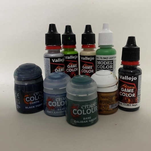 塗装には水性アクリル塗料のシタデルカラーとファレホを使用。