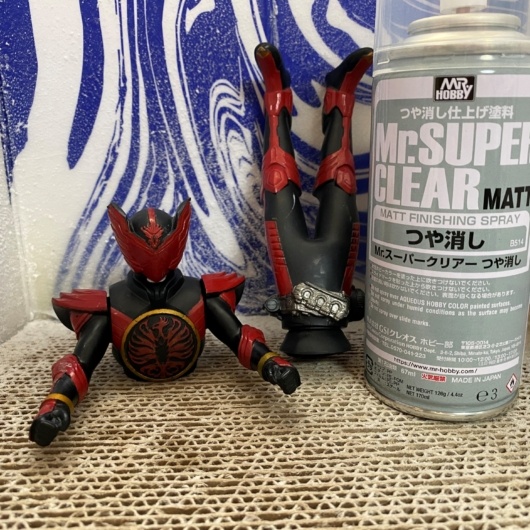 乾燥後、「Mr.スーパークリア(つや消し)」を全体に吹き、下地を整えます。